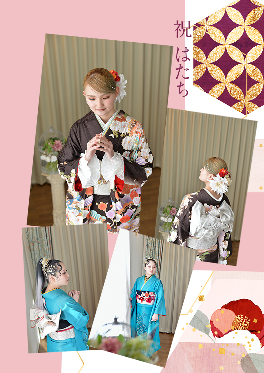 七五三パック、成人記念パック、卒業袴パック、お着物のおしたくなど。
