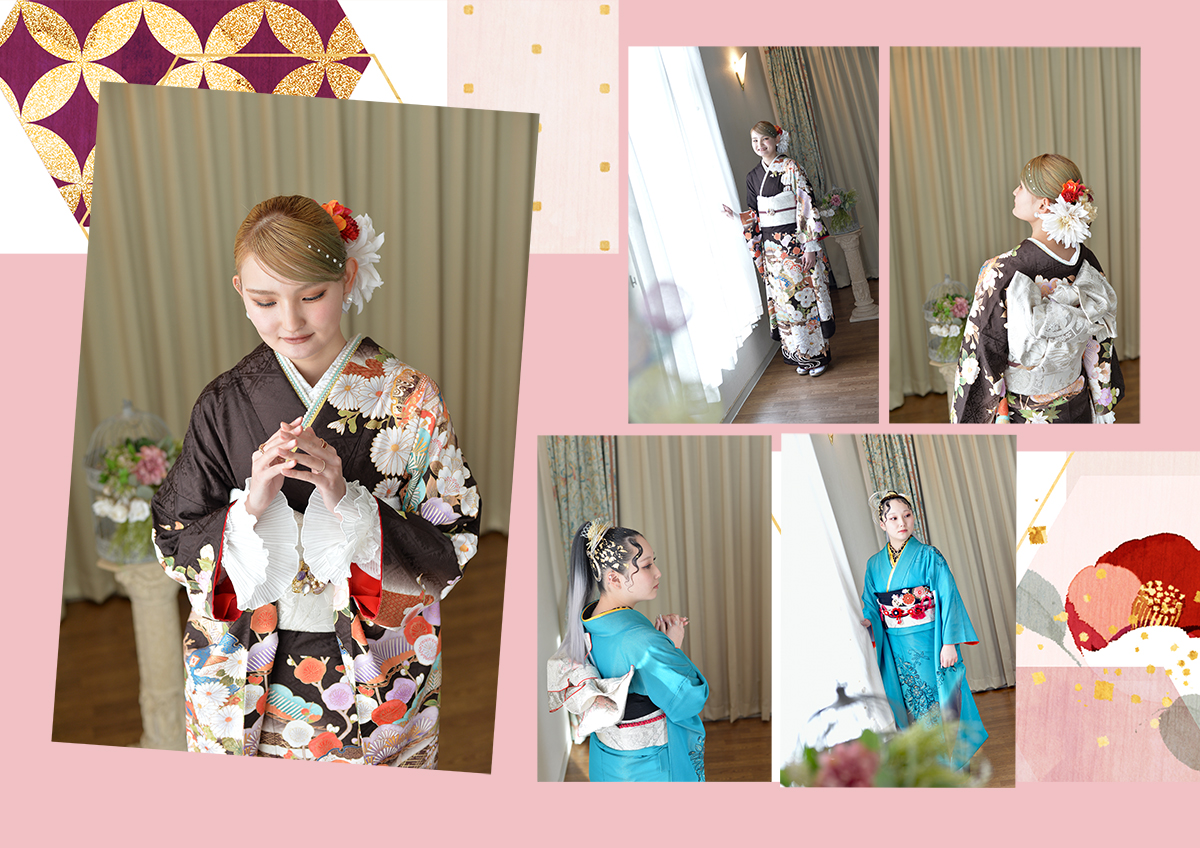七五三パック、成人記念パック、卒業袴パック、お着物のおしたくなど。