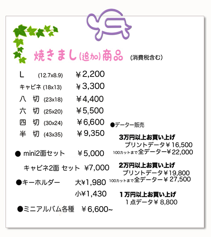 - 家族写真撮影の場合は最低1枚お買い上げをお願いします。